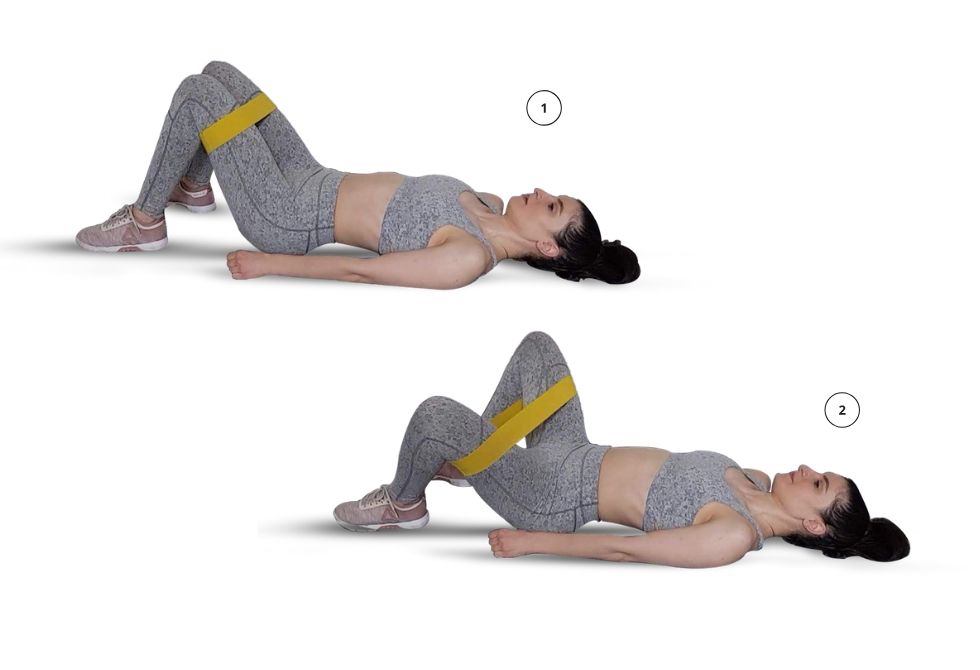 하체_ 베드에서 짐볼/레지스턴스 밴드 어브덕션 버티기 1분 > 100회