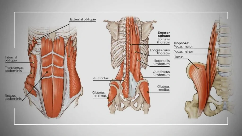 배바깥빗근 Obliques 고관절 굴곡근 hip flexors [장요근 lliopsaos 대퇴직근 rectus femoris 대퇴근막장근 tensor fascia latae 봉공근 sartorius 치골근 pectineus 단내전근 adductor brebis 장내전근 adductor logus 대내전근 adductor magnus