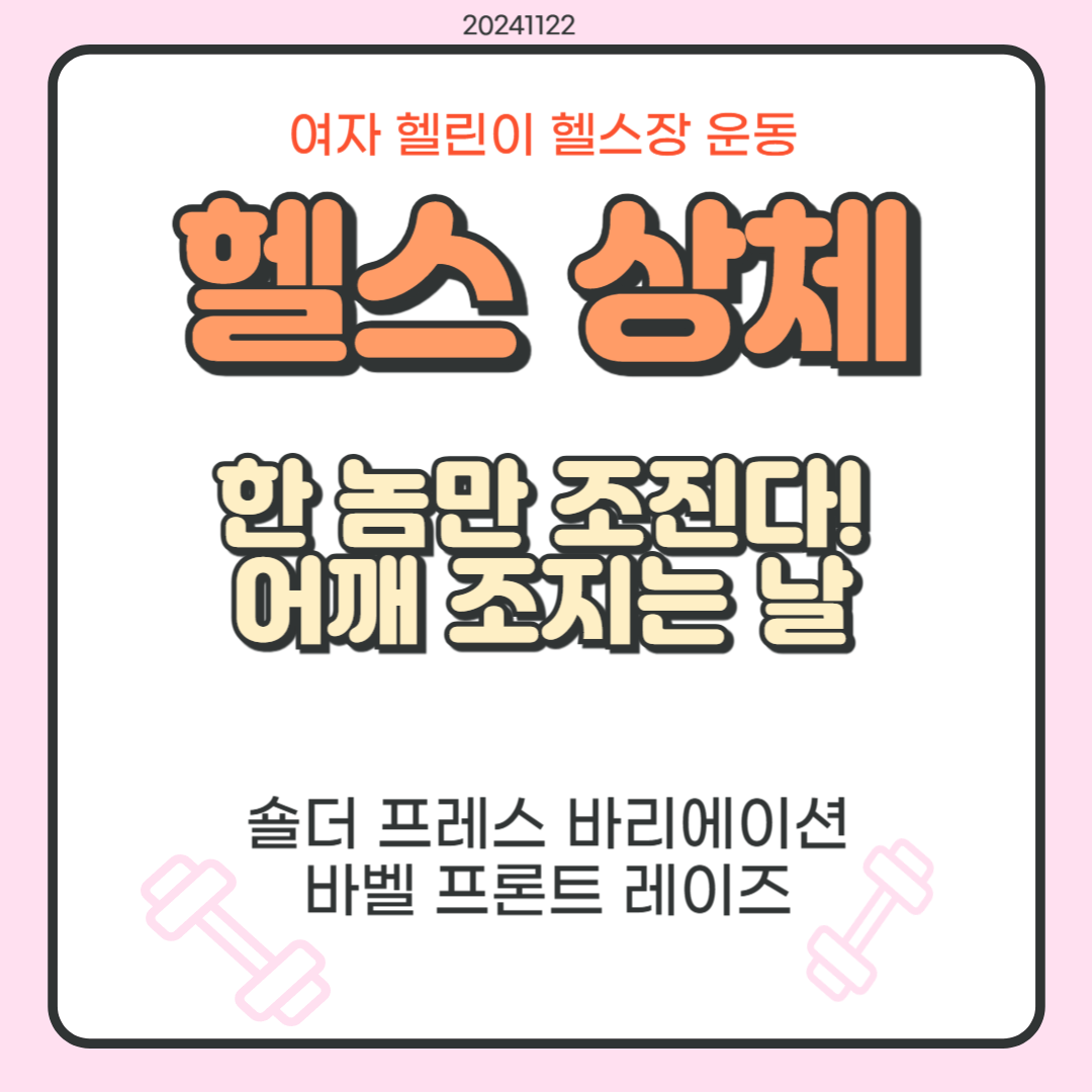 벤치는 조금만 뒤로 젖히기. 너무 누우면 벤치 프레스가 되기 때문에, 즉당히 어깨만 사용할 정도로~